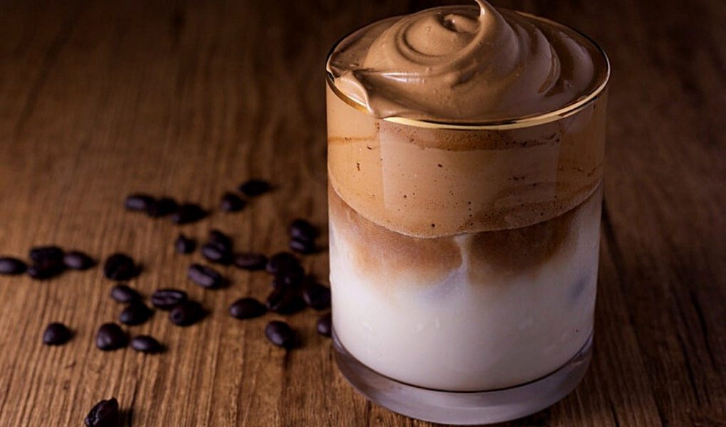 Batido de gelato Vainilla con Café Frío, Caramelo Salado y Espuma de Leche al Cardamomo