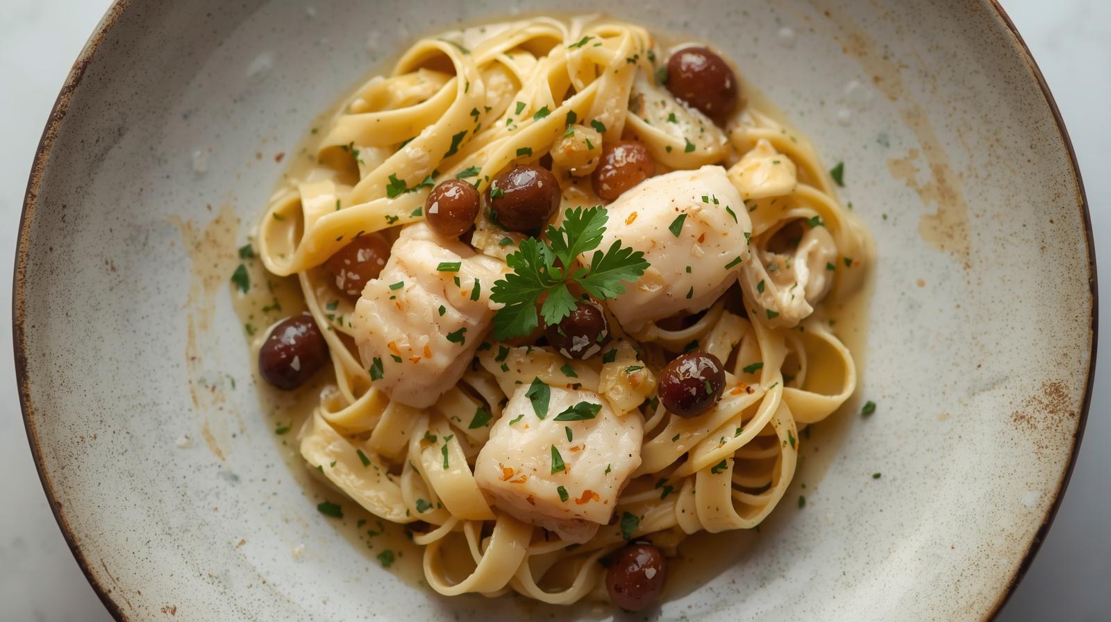 Tagliatelle all’Uovo Con Rape, Alcachofas y Olivas